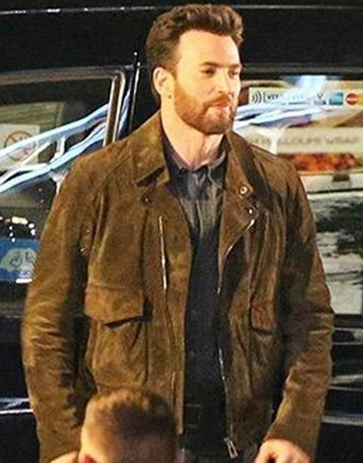 Ghosted Chris Evans Biker Brown Suede Jacket