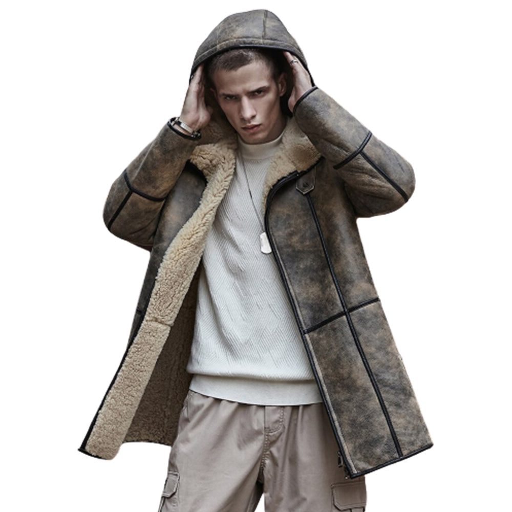 Men's B7 Real Sheepskin RAF Air Force Flight Pilot Leather Coat