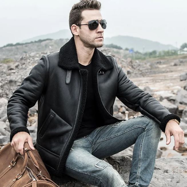 Men's Black Leather Shearling Jacket